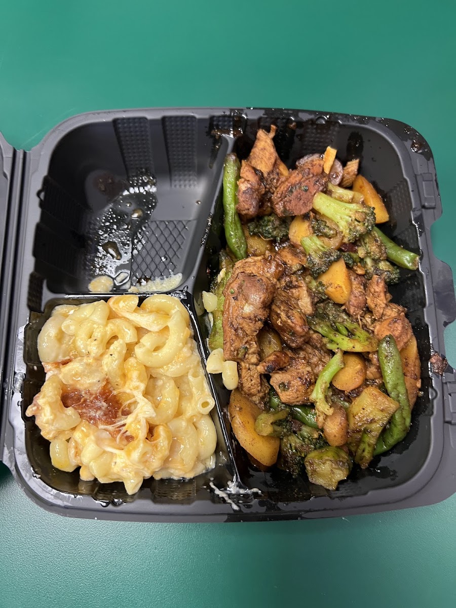 The menu leans confidently into Jamaican-inspired comfort food, with jerk chicken as the clear favorite. What stood out to me wasn’t just the heat, but the balance. The slow-smoked jerk chicken carries layers of flavor rather than overwhelming spice. That comes from a traditional marinade process that typically includes allspice, thyme, garlic, and Scotch bonnet peppers. According to culinary research published by the Journal of Ethnic Foods, proper jerk seasoning relies on marinating proteins for at least 12 hours to allow the spices to fully penetrate, and that patience shows here. The meat stays juicy, with a smoky crust that tastes like it’s been tended to all day.